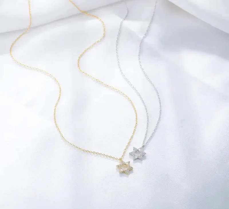 שרשראות מגן דוד מכסף אמיתי משובצות