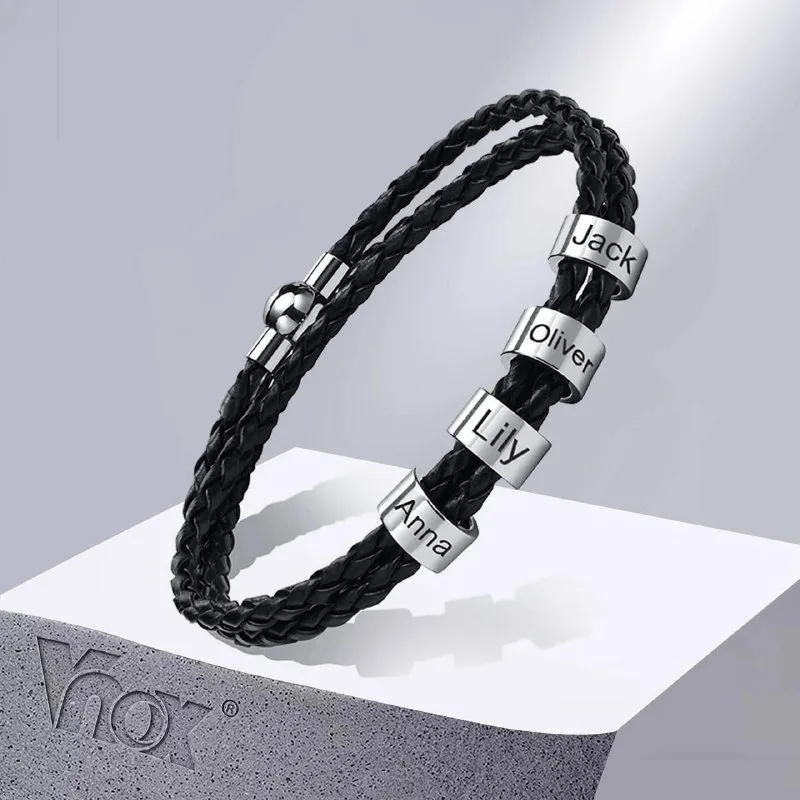 צמיד עור קלוע לגבר עם חריטה אישית