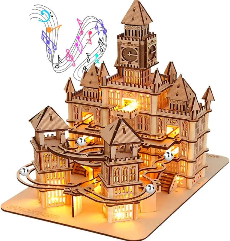 פאזל עץ תלת ממדי עם תאורת לד וקופסת נגינה