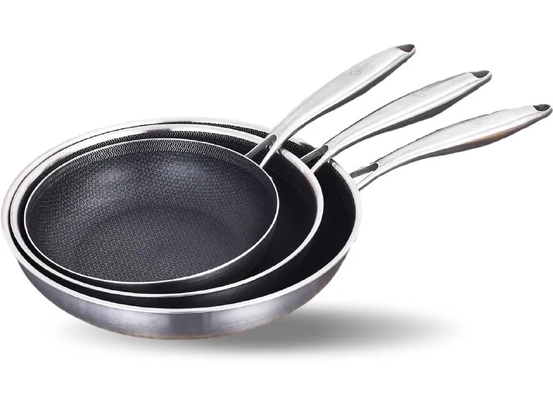 סט 3 מחבתות נון סטיק עם ידית נשלפת