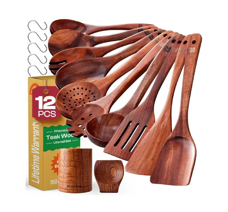 סט כלי בישול מעץ טיק כהה 12 חלקים