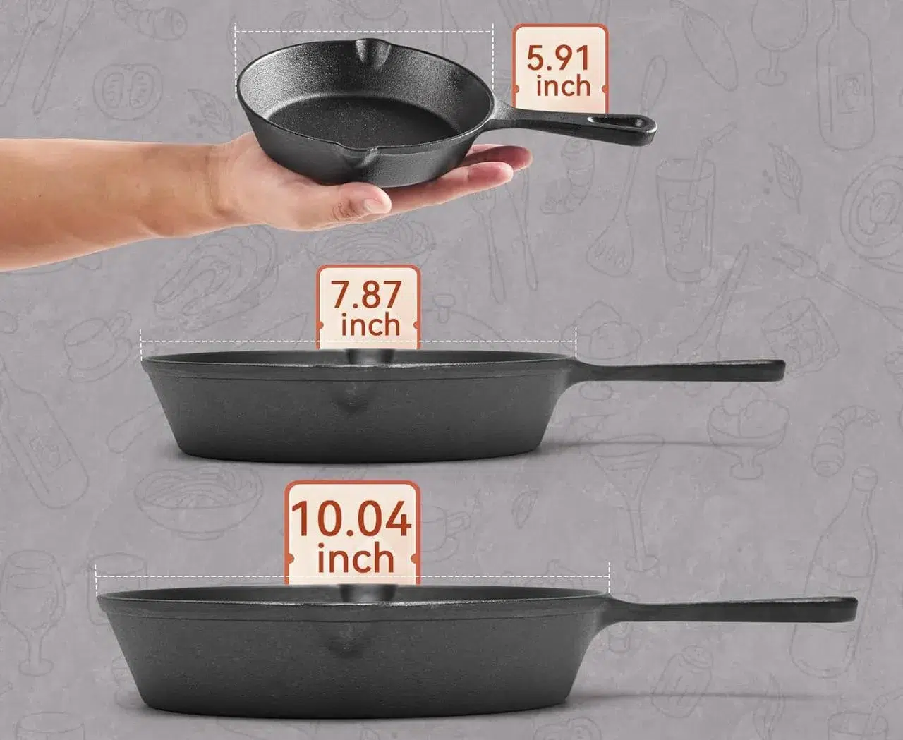 סט מחבתות ברזל יצוק כבדות WANGYUANJI