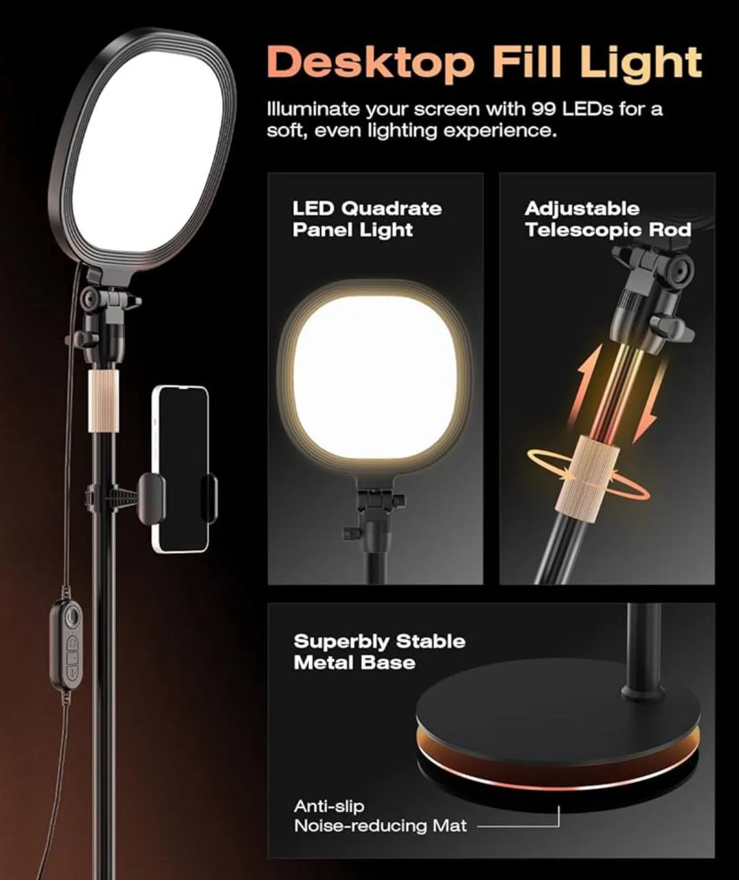 רינג לייט עם סטנד ומחזיק לטלפון