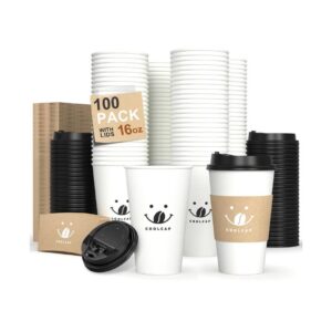 🔸 מארז משתלם: 100 כוסות נייר איכותיות בנפח 16 אונקיות (כ-473 מ”ל), כולל מכסים ושרוולים.