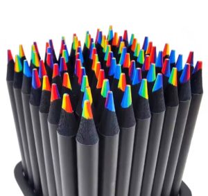 סט 10 עפרונות צבעוניים מעץ שחור – 7 ב-1 קשת צבעים 🌈✨