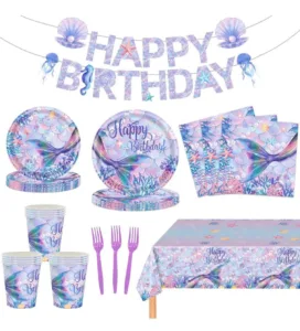 ערכת קישוטים למסיבת בת הים הקטנה – 122 חלקים (24 משתתפים) לכל מה שצריך למסיבה מהאגדות!
