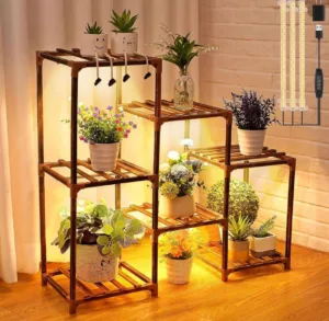 מתקן לצמחים עם תאורת גידול – 7 מדפים בעיצוב עץ יוקרתי!