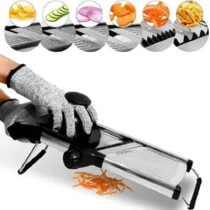🔹 קוצץ מנדולינה מתכוונן לחיתוך מדויק של ירקות.