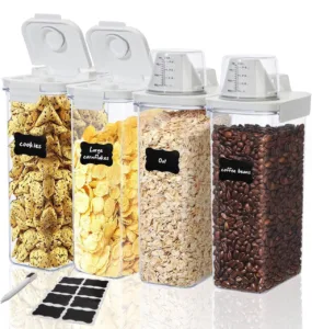עיצוב נוח: מכסה אטום ומדידות לדיוק בהגשה. אידיאלי לשמירה על טריות הדגנים והחטיפים.
