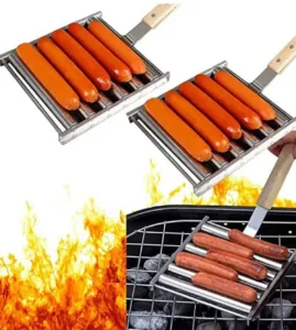 מכשיר להכנת נקניקיות במנגל עם גוף מסתובב