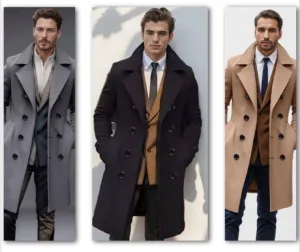 מעיל צמר ארוך לגברים לסתיו וחורף