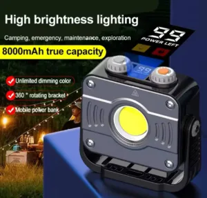 פנס עבודה עוצמתי עם סוללת 8000mAh לקמפינג ולחירום