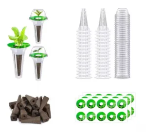 כולל 120 יחידות: קונוסים שקופים, ספוגי גידול ותוויות לסימון צמחים.
