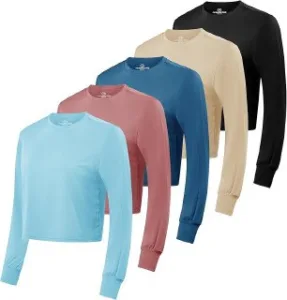 🔸 עיצוב קרופ מחמיא עם שרוולים ארוכים וצווארון עגול – מושלם לאימון וליומיום