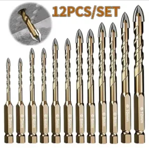 🔹 סט מקיף: כולל 12 מקדחים בגדלים 3-12 מ”מ למגוון עבודות