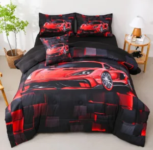 סט מצעים מדליק 6 חלקים כולל שמיכת פוך💥בעיצוב מכוניות מרוץ לילדים הכולל