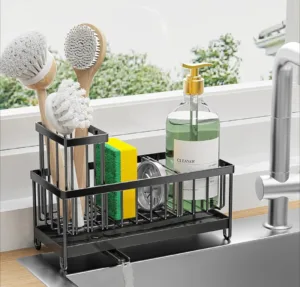 🔸 חוסך מקום על השיש – מתאים במיוחד למטבחים קטנים. כולל מקום לבקבוק סבון, ספוג, פקק כיור ומחזיק מברשות משודרג ל-4 מברשות.
