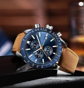 🔸 עיצוב קלאסי ואלגנטי: שעון כרונוגרף עם תצוגה אנלוגית ותאריך.