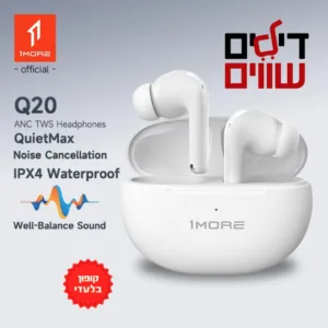 אוזניות אלחוטיות 1MORE Q20 עם ביטול רעשים אקטיבי QuietMax ואיכות סאונד מעולה