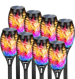 סט 8 לפידים סולאריים עם אפקט להבה צבעונית