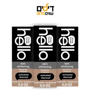 משחת שיניים Hello עם פחם פעיל ללא פלואוריד – מארז 3 יחידות