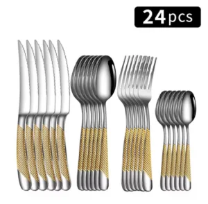 🍽️ סט סכו”ם מפלדת אל-חלד – 24 חלקים למשפחה – זמין בכמה צבעים