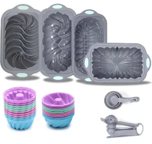 🔸 מגוון רחב: כולל תבניות לחם, תבניות קאפקייקס, כוסות מדידה וכפות מדידה – הכל בסט אחד.