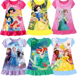 👗 שמלת פיג׳מה לילדות – עם הדפס אהוב של נסיכות מהאגדות