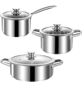 סט סירים ומחבתות מנירוסטה 6 חלקים, מתאים לכל סוגי הכיריים