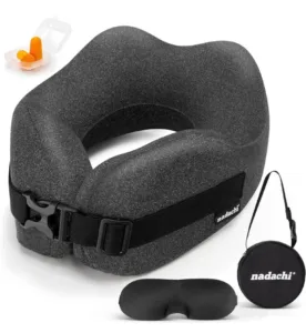 ✈️ כרית צוואר ארגונומית עם קצף זיכרון, כולל מסכת עיניים, אטמי אוזניים ותיק נשיאה – לנוחות מושלמת בכל נסיעה!