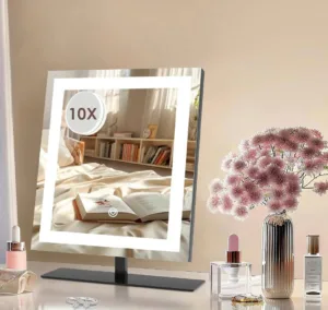 ✨ מראת איפור מוארת בגודל 23.5*26.3 ס״מ עם הגדלה 10X ותאורה מתכווננת לנוחות מושלמת בכל מצב!