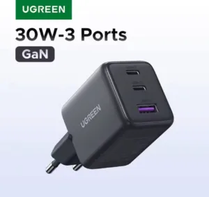 ⚡ מטען GaN 30W מבית Ugreen – טעינה מהירה עם 3 יציאות USB-C ו-USB-A