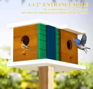 🐦 בית עץ לציפורים עם 2 פתחים – פתרון מקסים וטבעי למראה חי ומזמין בגינה!