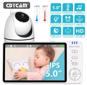 מסך בייבי מוניטור בגודל 5 אינץ’ עם מצלמה מסתובבת ושמע דו כיווני
