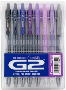 🔸 הסט כולל 8 עטים בגוונים מעוררי יצירתיות, רובם ממשפחת הצבע הסגול.