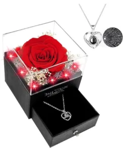 קופסת שושנה נצחית עם שרשרת לב – מתנה מושלמת לנשים מבית Preserved Rose