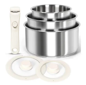 סט סירים מנירוסטה עם ידית נשלפת מבית MICHELANGELO – מתאים לאינדוקציה, עיצוב לבן ונקי