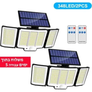 זוג מנורות קיר סולארית עם חיישן תנועה 348 נורות LED ועיצוב עמיד למים