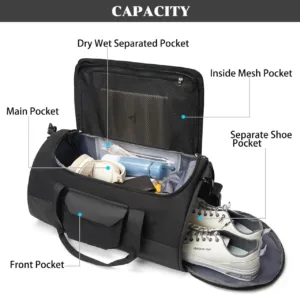 תיק רב-תכליתי לחדר כושר, ספורט ונסיעות עם תא נעליים ותא רטוב