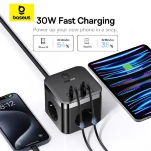 3 שקעים, 2 חיבורי Type C, ו2 חיבורי USB