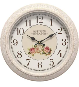 שעון קיר בעיצוב ורדים קלאסי בגודל 11.5 אינץ’ עם מנגנון שקט