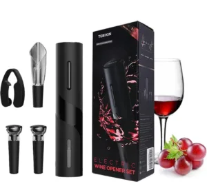 פותחן בקבוקי יין חשמלי כולל קאטר, משאבת וואקום ופקק אוורר