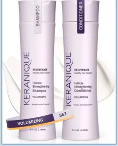 סט שמפו ומרכך של Keranique לנפח ולצמיחה מחודשת עם קרטין וביוטין