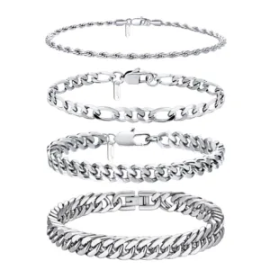 סט של 4 צמידים מברזל אל-חלד מבית Ritach – שילוב מושלם בין קלאסי למודרני, לגברים ולנשים!