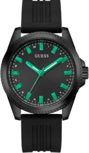 שעון לגבר של Guess בקוטר 44 מ”מ עם רצועת סיליקון שחורה