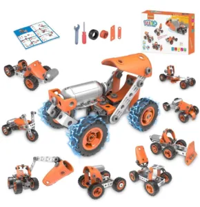 🔸כוללת 84 חלקים לבניית טרקטור, בולדוזר, אופנוע, ג’יפ ועוד – דגם אחד בכל פעם