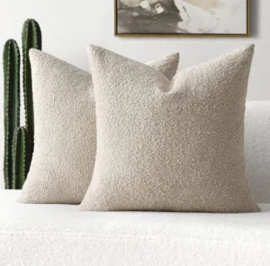 סט של 2 כיסויי כריות מבית FUTEI – בד בוקלה רך בגוון בז’, למראה מודרני וחמים בבית!