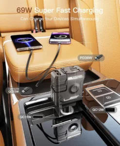 מטען 4 ב-1 נשלף לרכב – טעינה מהירה 69W עם עיצוב קומפקטי