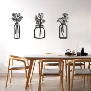 סט מתכתי של 3 יצירות קיר בעיצוב פרחוני – מינימליזם שעושה הבדל!