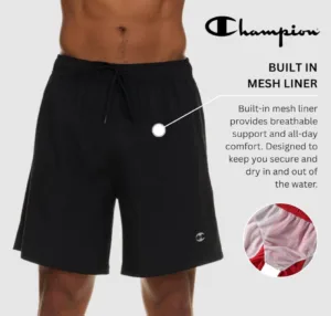 בגד ים לגברים Champion עם רשת פנימית ובד מתייבש במהירות